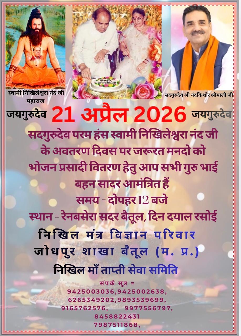 बैतूल। साहू समाज के वरिष्ठ व टिंबर व्यवसायी बालाराम साहू के सुपुत्र विक्रांत साहू तथा श्रीमती जयश्री साहू के सुपुत्र…