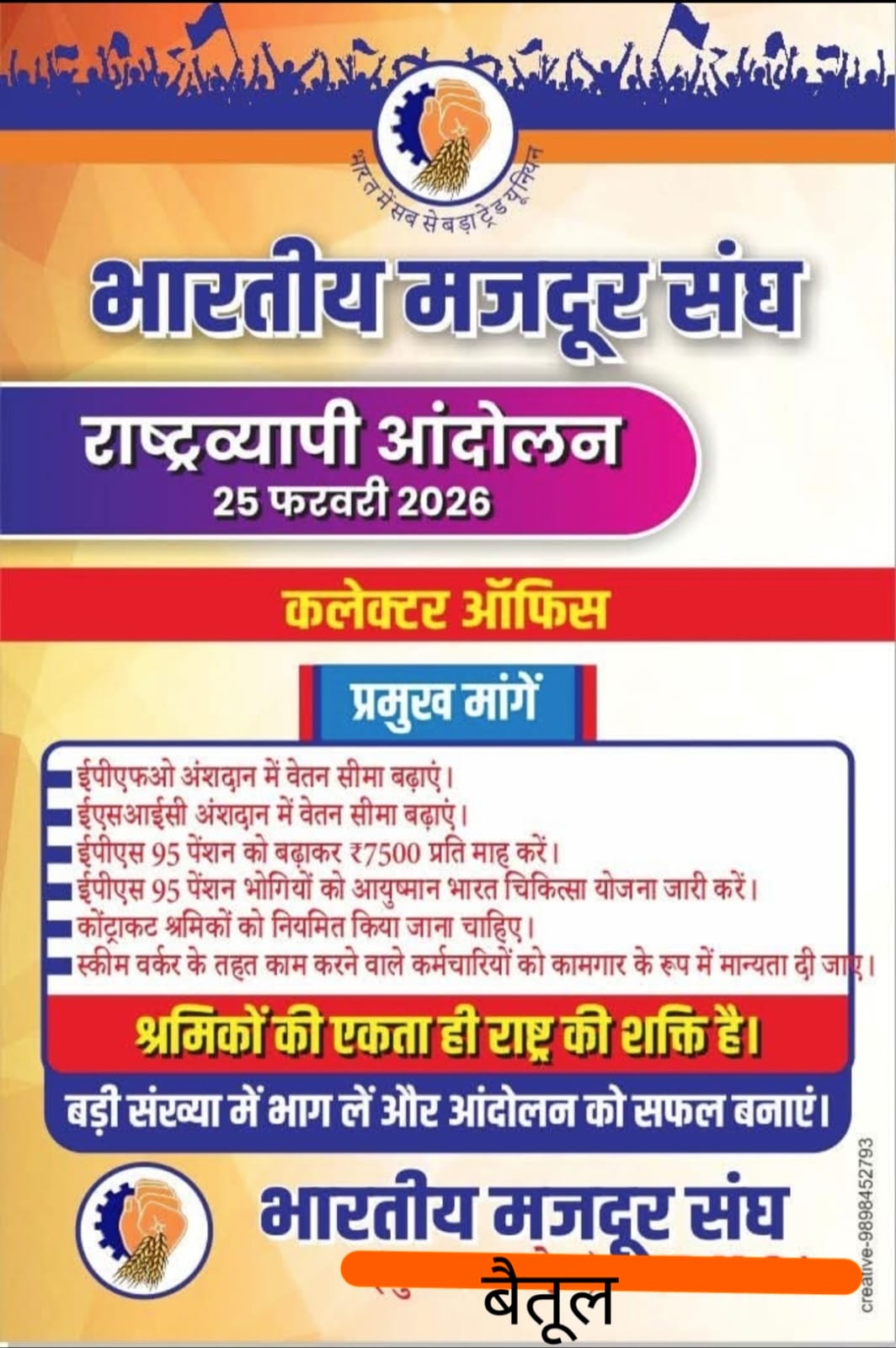 बैतूल। भारतीय मजदूर संघ के राष्ट्रव्यापी आह्वान पर आज 25 फरवरी को देशभर के जिला मुख्यालयों पर विरोध दिवस…