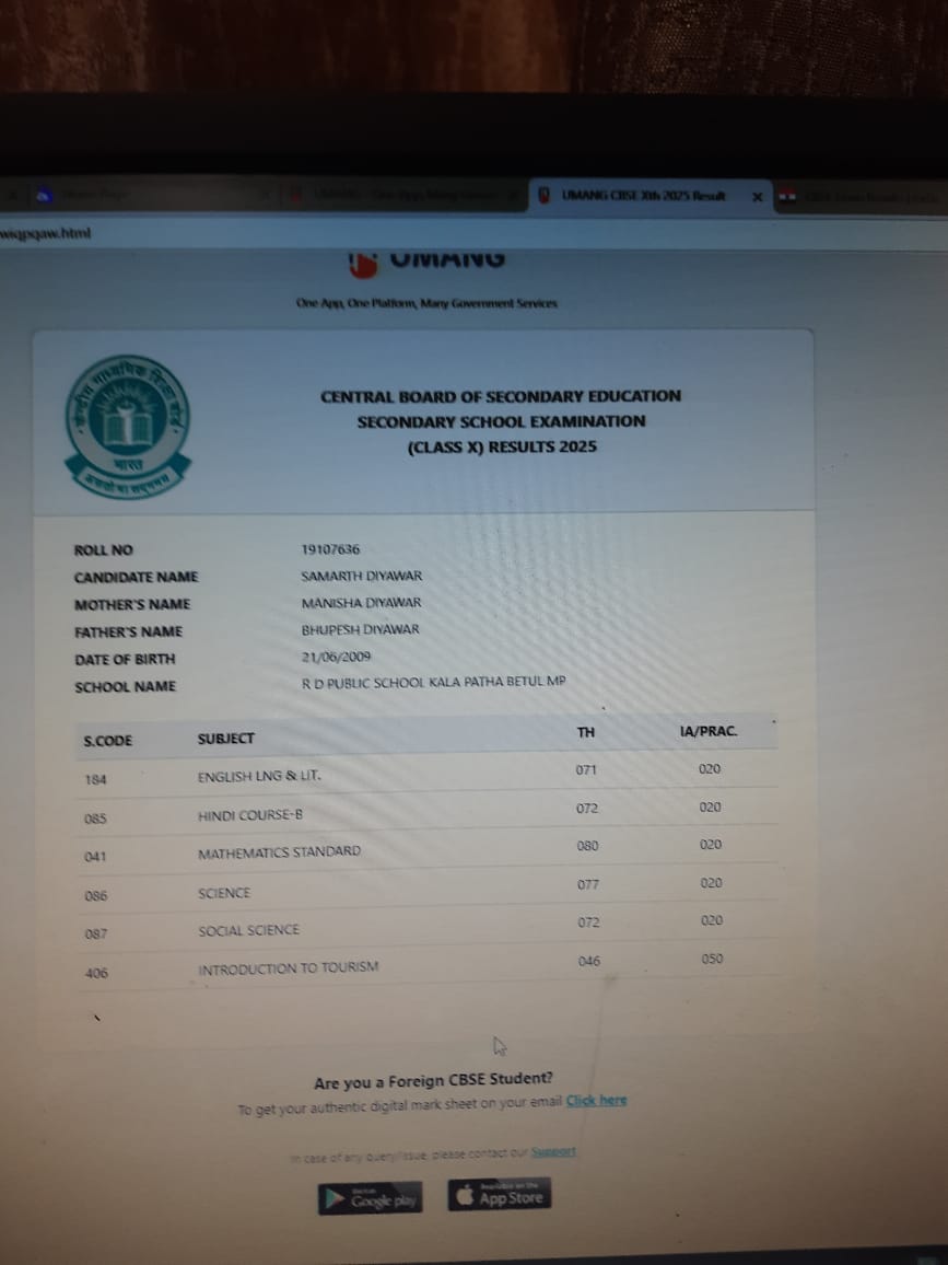 समर्थ दियावार ने सीबीएसई 10वीं में 94.4% अंक के साथ रचा कीर्तिमान