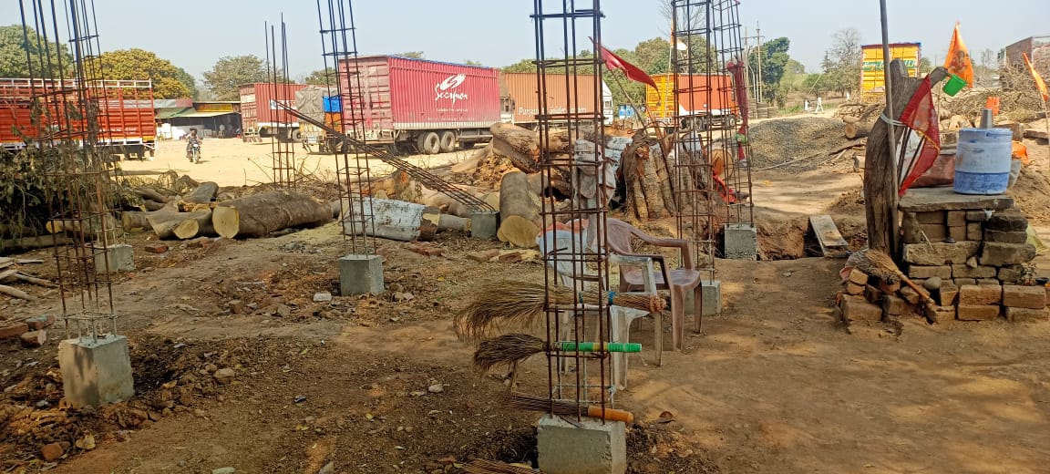 ठेकेदार की मनमानी से चौपाल निर्माण अधर में, पेड़ गिरने से ढहा कालम