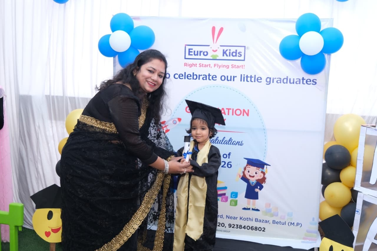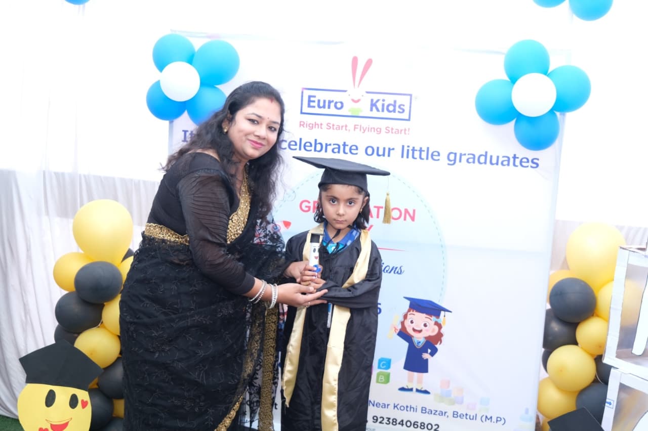 बैतूल। यूरोकिड्स अवस्थी कॉलोनी में ग्रेजुएशन डे समारोह उत्साहपूर्वक मनाया गया। कार्यक्रम में बड़ी संख्या में अभिभावक और नन्हे विद्यार्थी शामिल हुए। इस अवसर पर छोटे बच्चों को ग्रेजुएशन सर्टिफिकेट प्रदान कर उनके शैक्षणिक सफर के पहले चरण को सम्मानित किया गया।