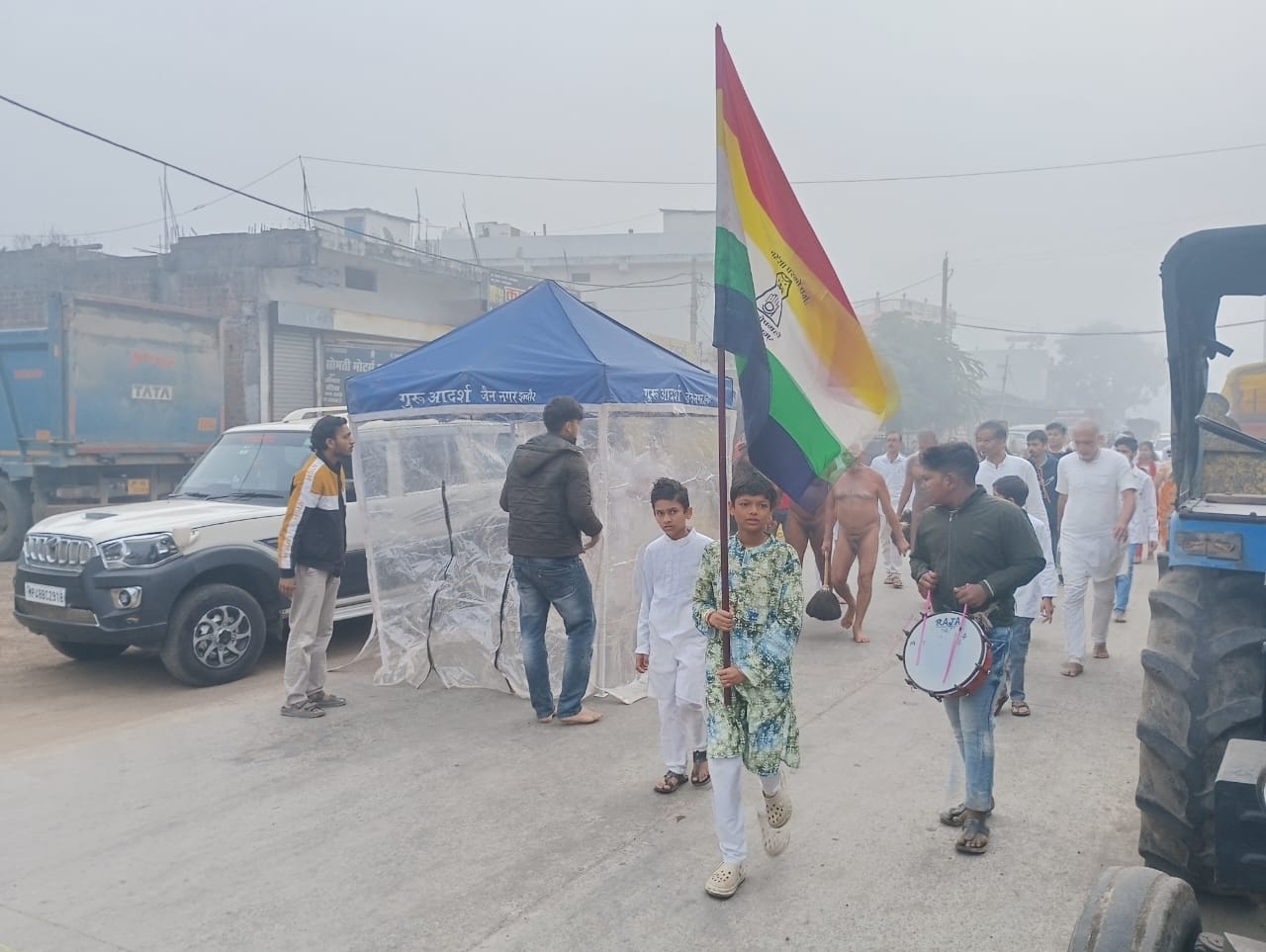 कठिन तप का जीवंत उदाहरण हैं जैन संत, आठनेर में घने कोहरे के बीच निकली पावन यत्रा