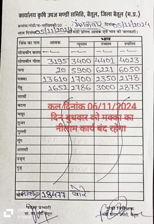 Mandi Bhav Betul : बैतूल मंडी में मक्का की बंपर आवक, बुधवार को मक्का की खरीदी नहीं होगी