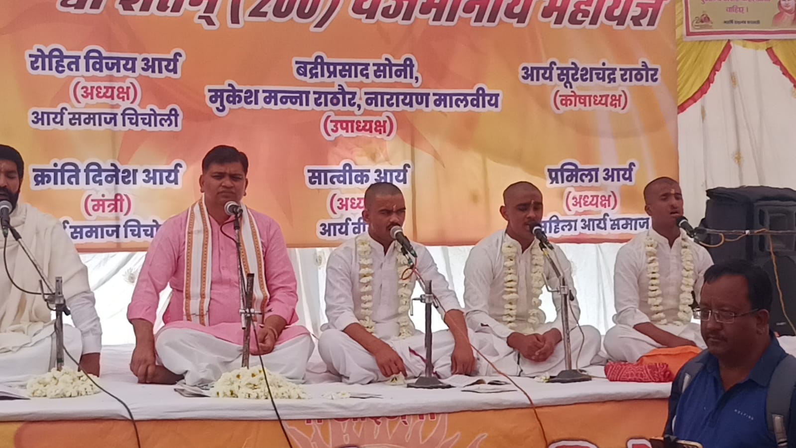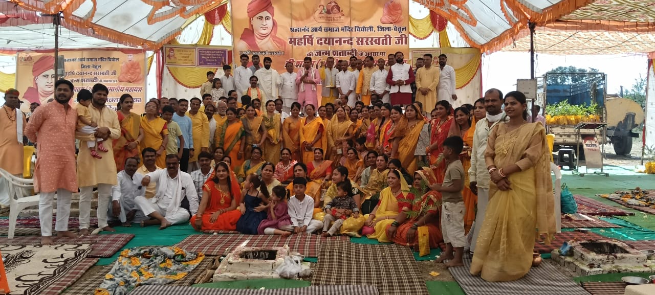 बैतूल। चिचोली नगर के श्री तपश्री स्टेडियम में श्रद्धानंद आर्य समाज द्वारा बुधवार 12 फरवरी को महर्षि दयानंद सरस्वती की 200वीं जयंती के अवसर पर 51 कुंडीय यज्ञ का आयोजन किया गया। इस वैदिक महायज्ञ में 205 यजमानों ने वैदिक मंत्रोच्चार के साथ आहुति प्रदान की। आर्य विद्वान आचार्य योगेंद्र याज्ञिक ने यज्ञ विधि संपन्न करवाई और उपस्थित जनसमूह को वेदों की महत्ता व यज्ञ के वैज्ञानिक महत्व के बारे में बताया।