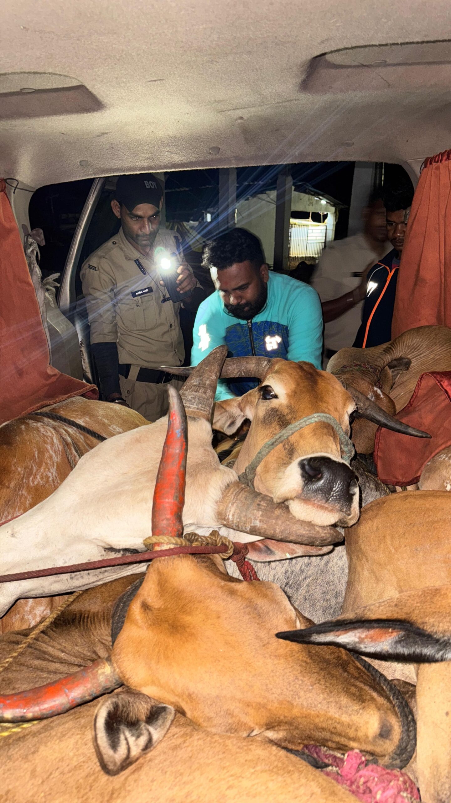 विभाग अध्यक्ष दीपक कोसे ने बताया कि जब गाड़ी के दरवाजे खोले गए तो दृश्य अत्यंत पीड़ादायक था। सभी गायें रस्सियों से बंधी हुई थीं, एक-दूसरे के ऊपर रखी गई थीं। उन्हें तत्काल पुलिस की उपस्थिति में मां पूर्णा गौशाला पहुंचाया गया।