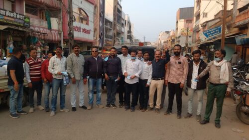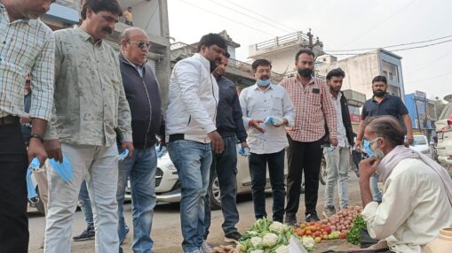 खराब सड़क और उड़ती धूल पर कांग्रेस का अनोखा विरोध प्रदर्शन, थाने चौक से लल्ली चौक तक व्यापारियों को बांटे मास्क